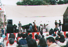 | かつては学生街として賑わっていた帝塚山でしたが、 その大学や短大が郊外に移転して若者の姿がめっきり 減ってしまい、「寂しくなってしまった」「このまま では帝塚山の街が衰退してしまう」「何か街に活気を 取り戻すイベントが必要だ!!」ということで阿倍野 区・住吉区にまたがるこの帝塚山地区の、いろいろな お店の経営者たちが立ち上がり、第1回帝塚山音楽祭 が昭和62年11月7日・8日に開催されました。 |